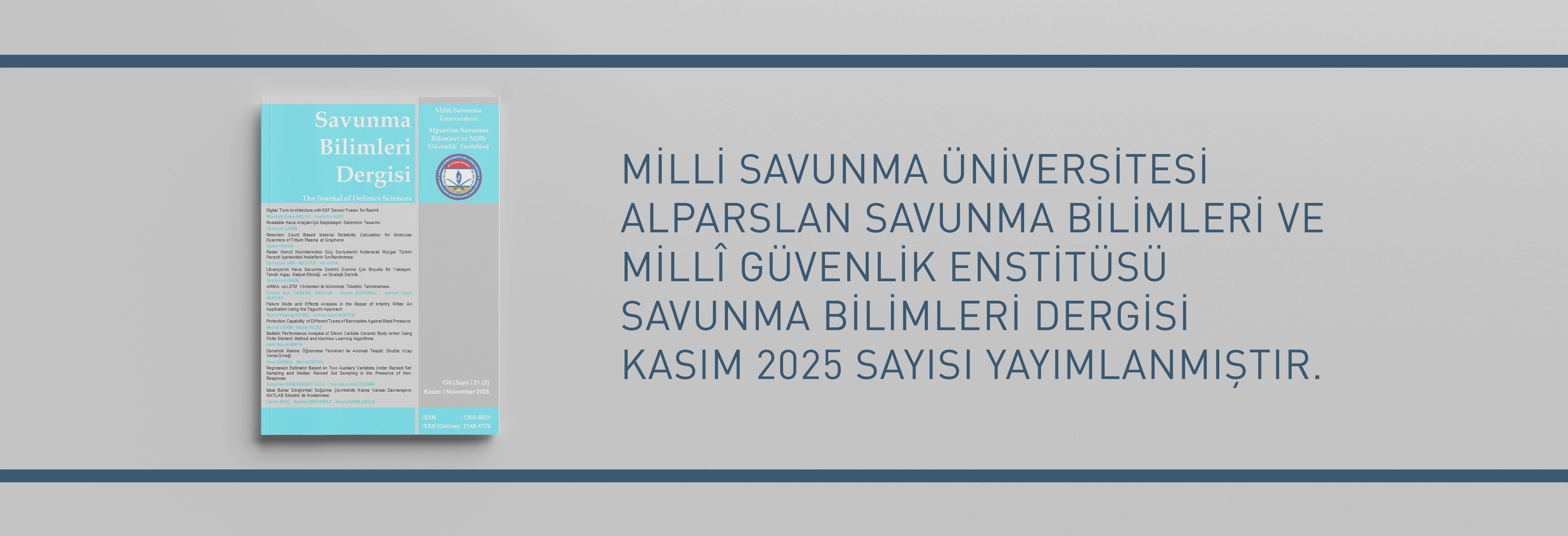 Millî Savunma Üniversitesi Alparslan Savunma Bilimleri ve Millî Güvenlik Enstitüsü Müdürlüğü Bünyesinde Yayımlanan Savunma Bilimleri Dergisinin Kasım 2025 Sayısı Yayımlanmıştır